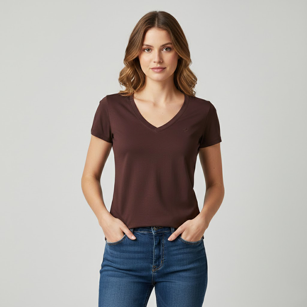 Blusa Dudalina Dec V Pima Touch Ou26 Marrom Feminino