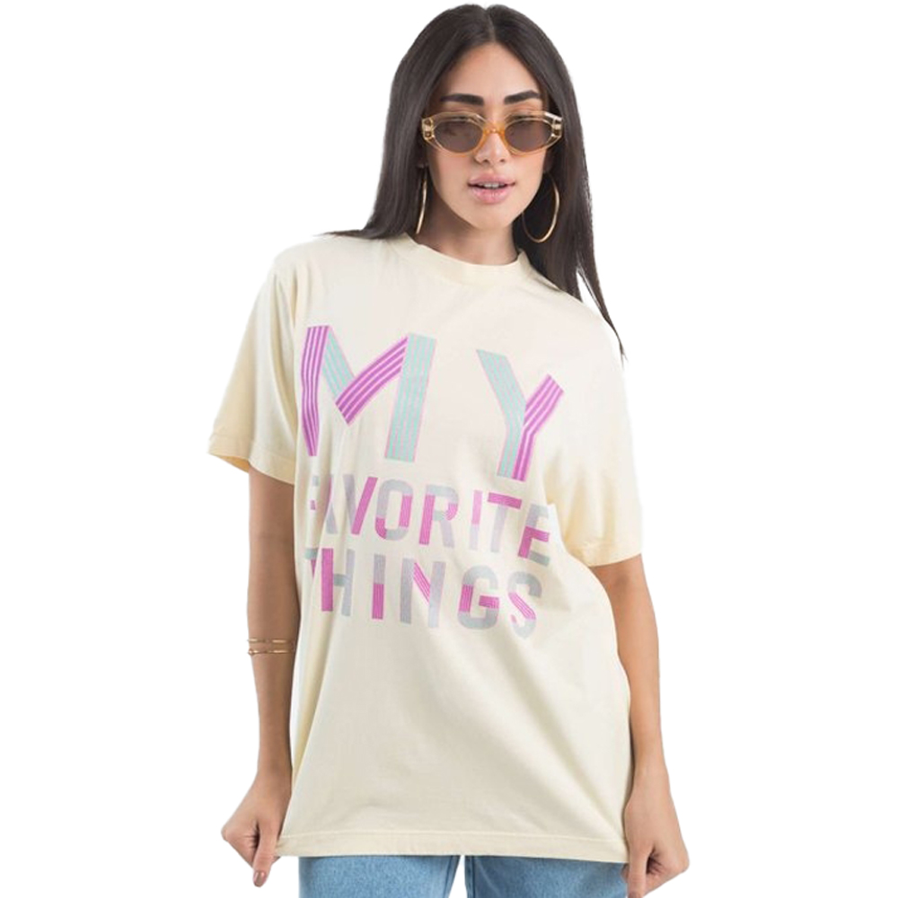 A t-shirt possui estampa localizada e modelagem alongada. Aposte em look cool.