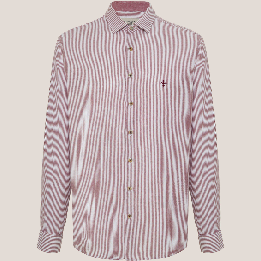Camisa Dudalina Comfort Oxford Listras Ve26 Bordô Masculino