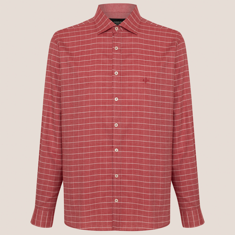 Camisa Dudalina Comfort Oxford Xadre Ve26 Vermelho Masculino