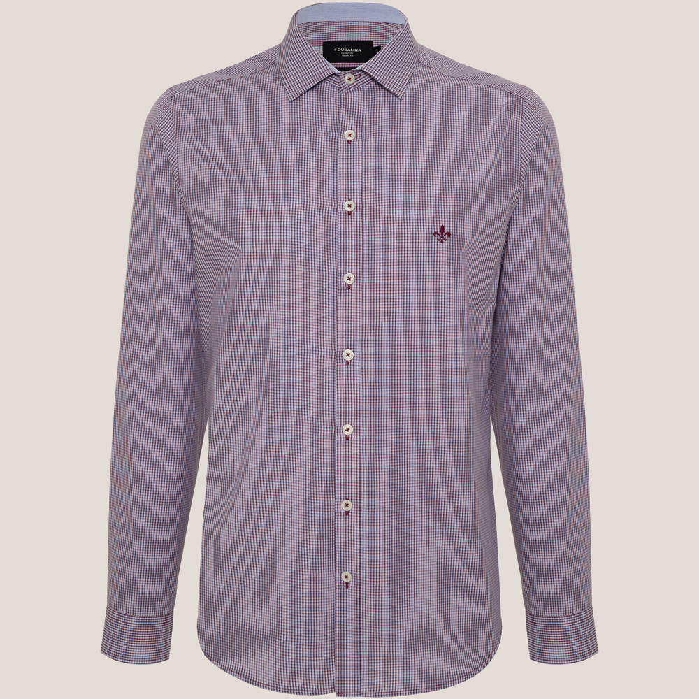 Camisa Dudalina Milano Microxadrez Ve26 Bordô Masculino