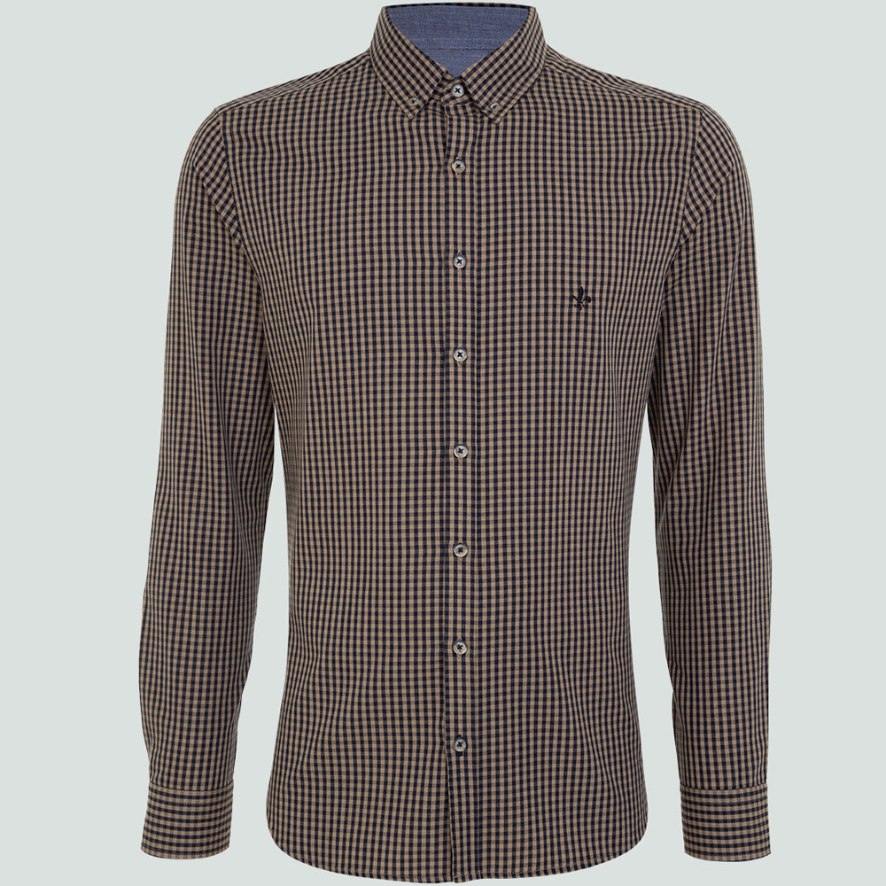 Camisa Dudalina Milano Xadrez Ou25 Bege Masculino
