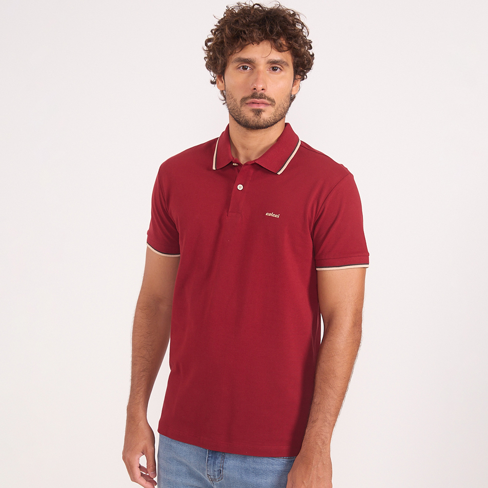 Camisa Polo Colcci 2 Listras In26 Vermelho Masculino