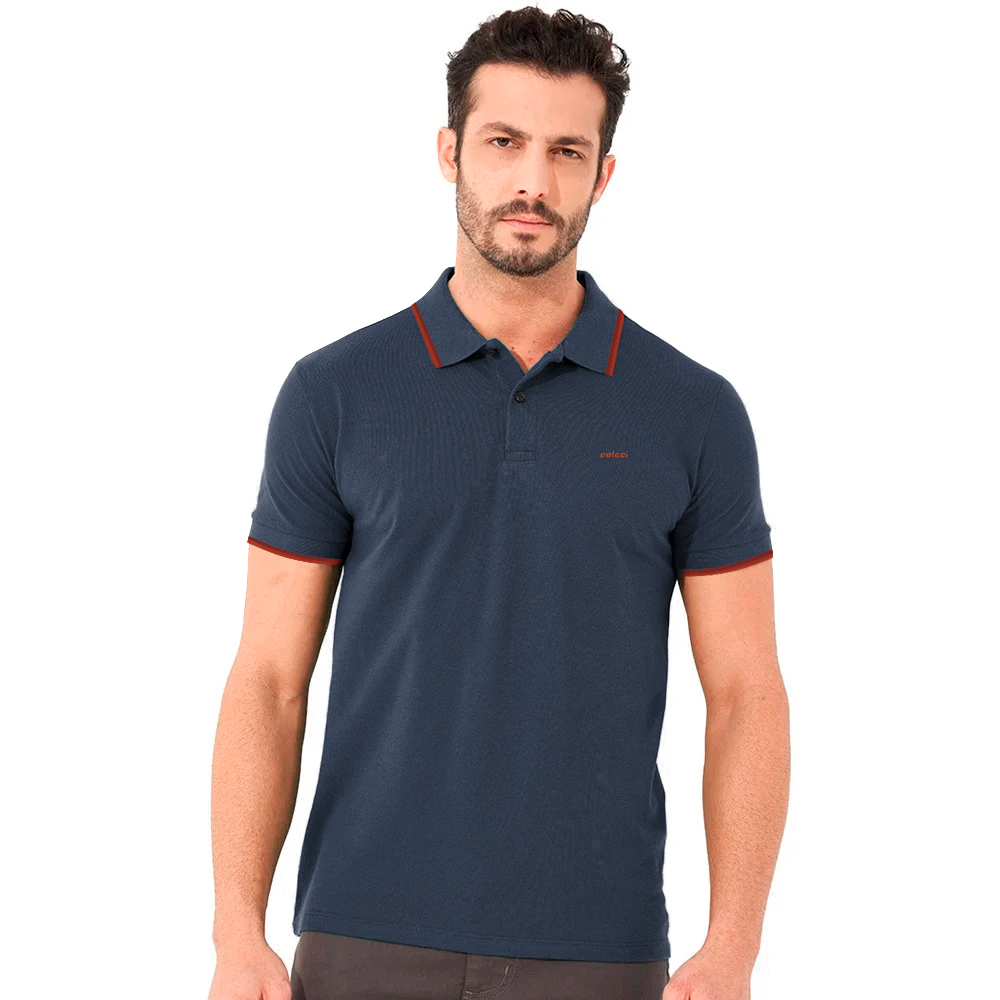 Camisa Polo Colcci Double Lines Ou24 Azul Marinho Masculino