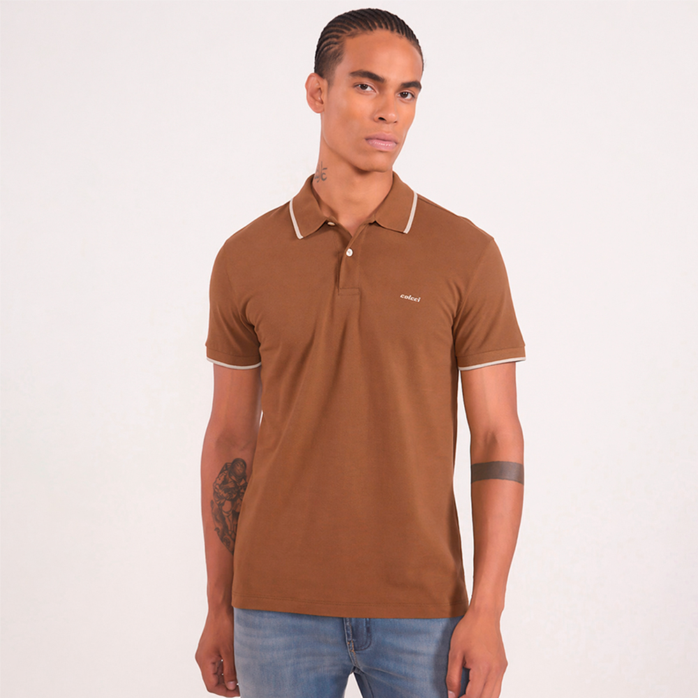 Camisa Polo Colcci Piquet 1 Listra In26 Marrom Masculino