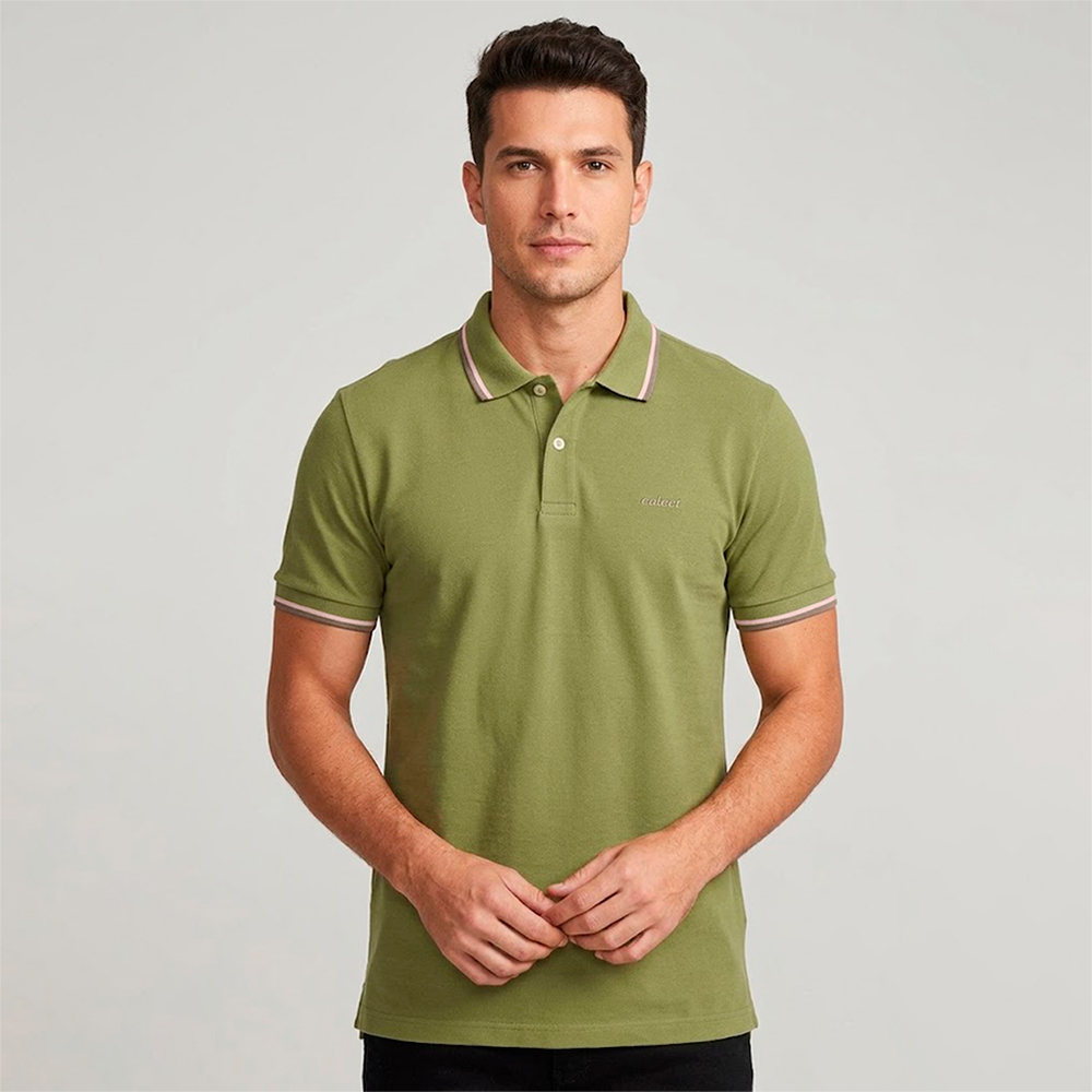 Camisa Polo Colcci Piquet 2 Listras In26 Verde Masculino