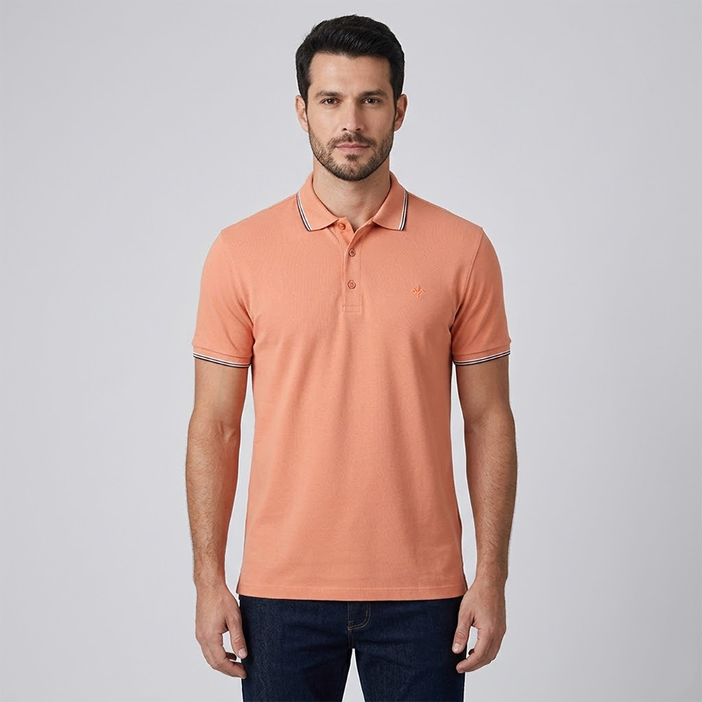 Camisa Polo Dudalina Frisos Degradê In26 Laranja Masculino
