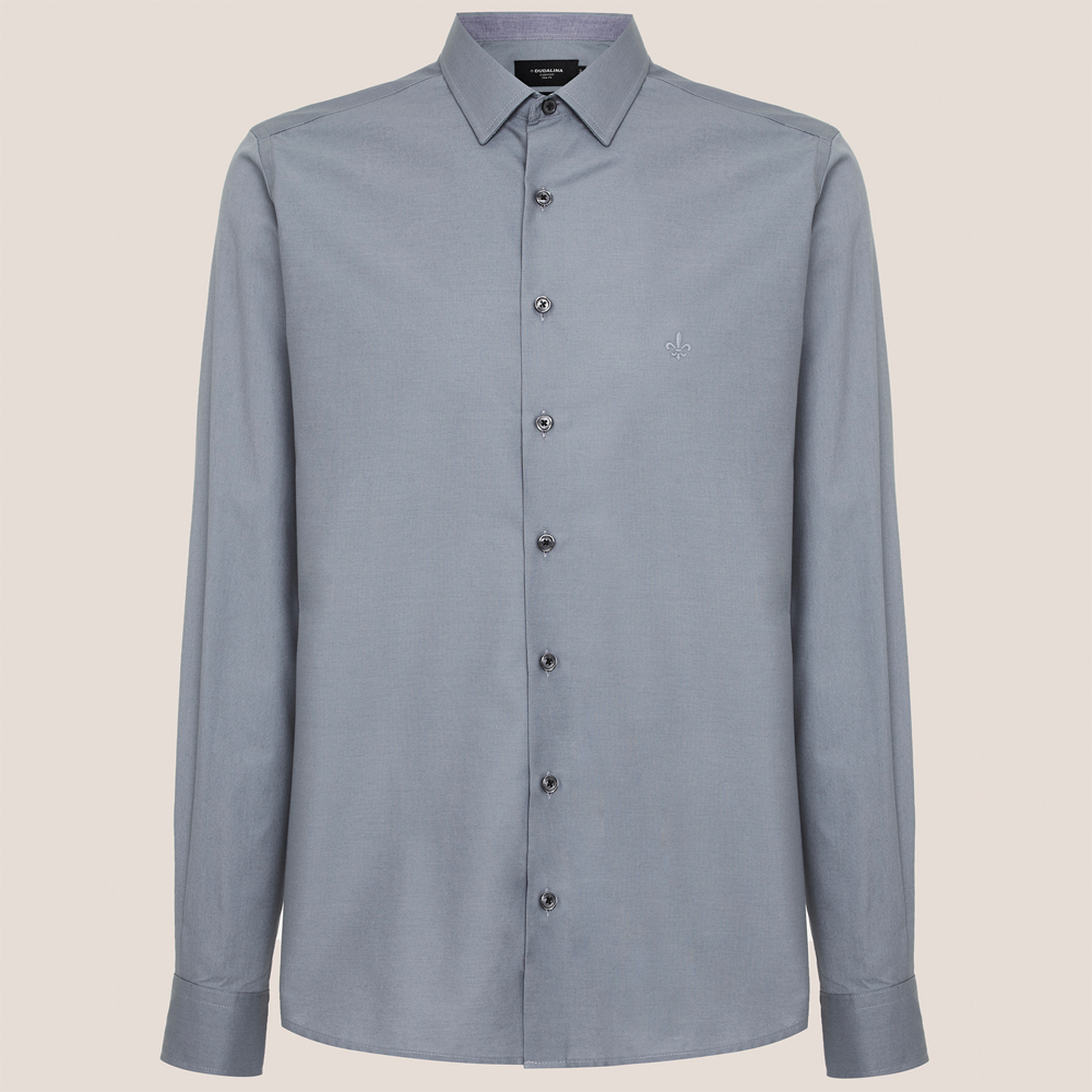 Camisa Slim Dudalina Trico Lisa Ve26 Cinza Masculino