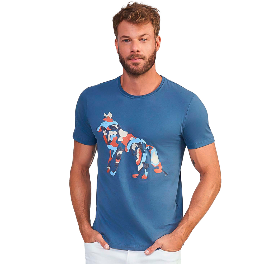 Camiseta Acostamento Lobo Camuflado VE24 Azul Masculino