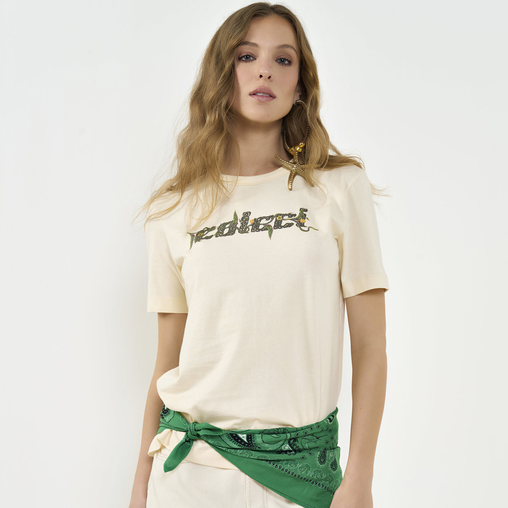 Camiseta Colcci Leaves Av26 Bege Feminino
