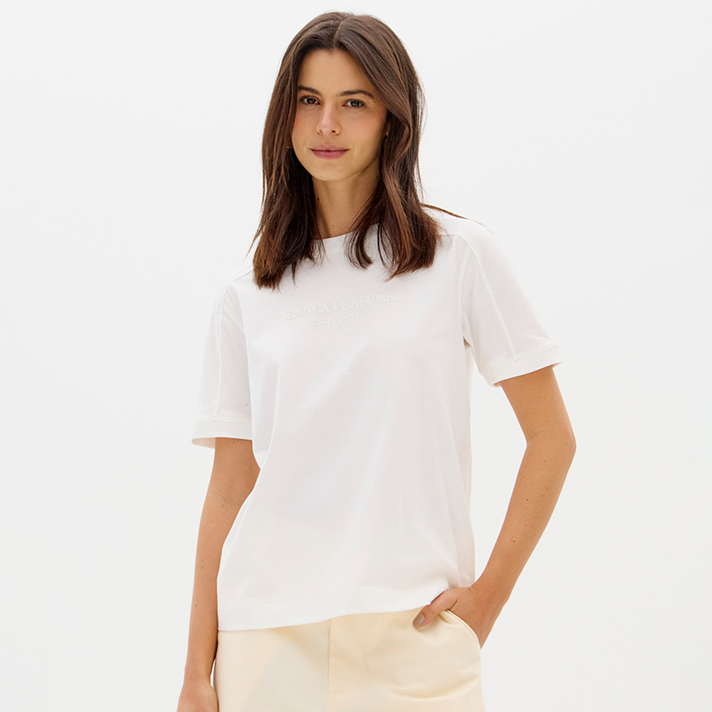 Camiseta Easy Lança Perfume Recortes Ou26 Off White Feminino