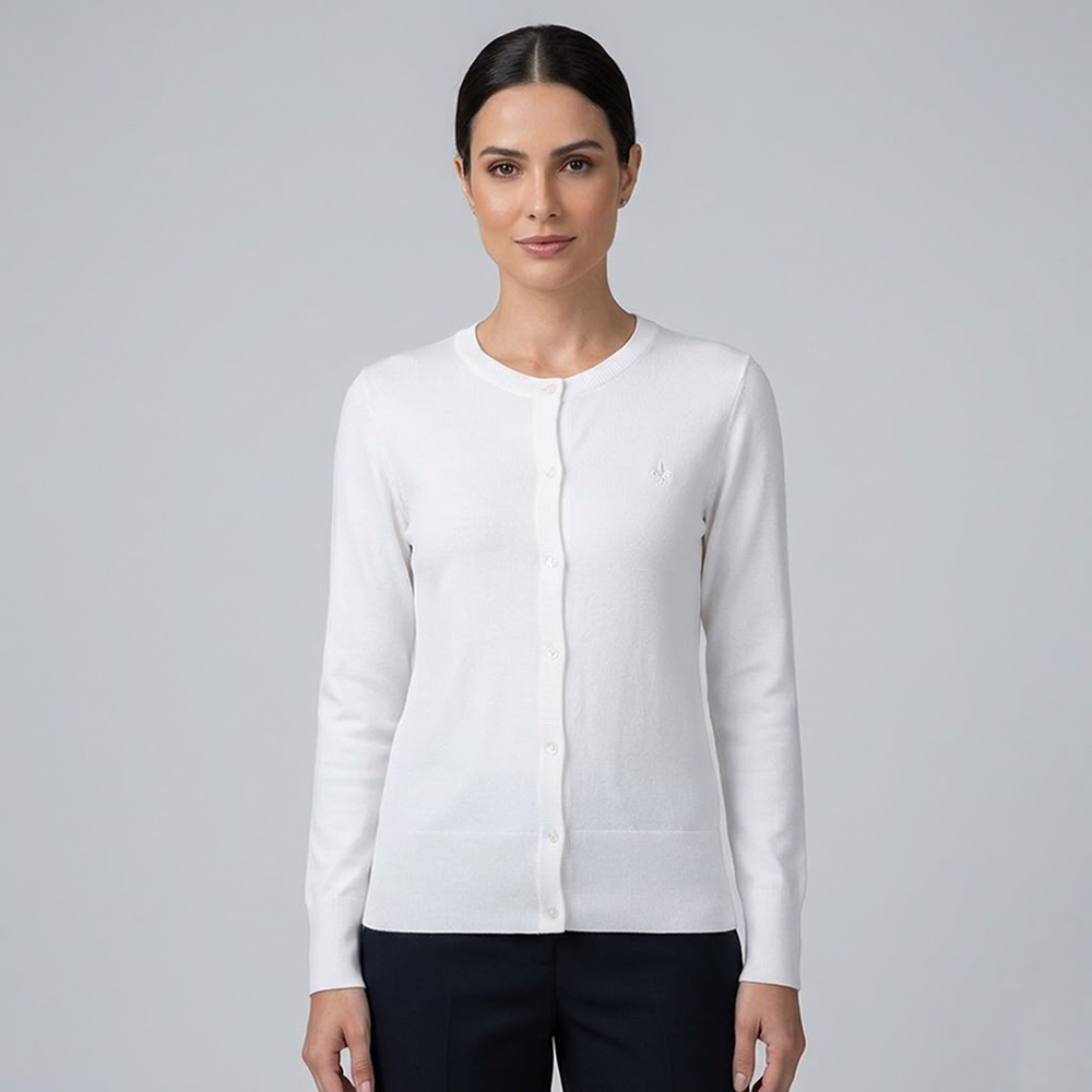Cardigan Tricot Dudalina Basic In26 Off White Feminino