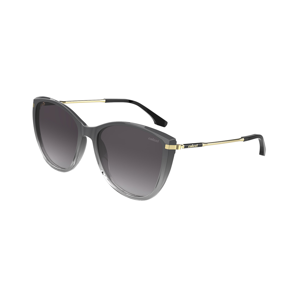 O modelo solar Tati combina uma frente em poliamida, em um clássico gateado, com finas hastes em metal. Com tamanho médio, este modelo se adapta com facilidade a diferentes formatos de rosto.