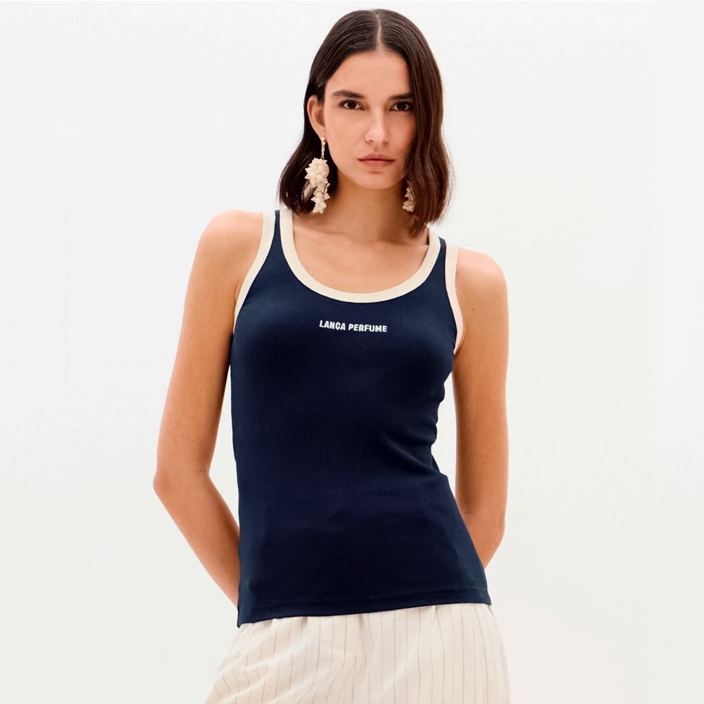 Regata Lança Perfume Canelada Bordado Ve26 Marinho Feminino
