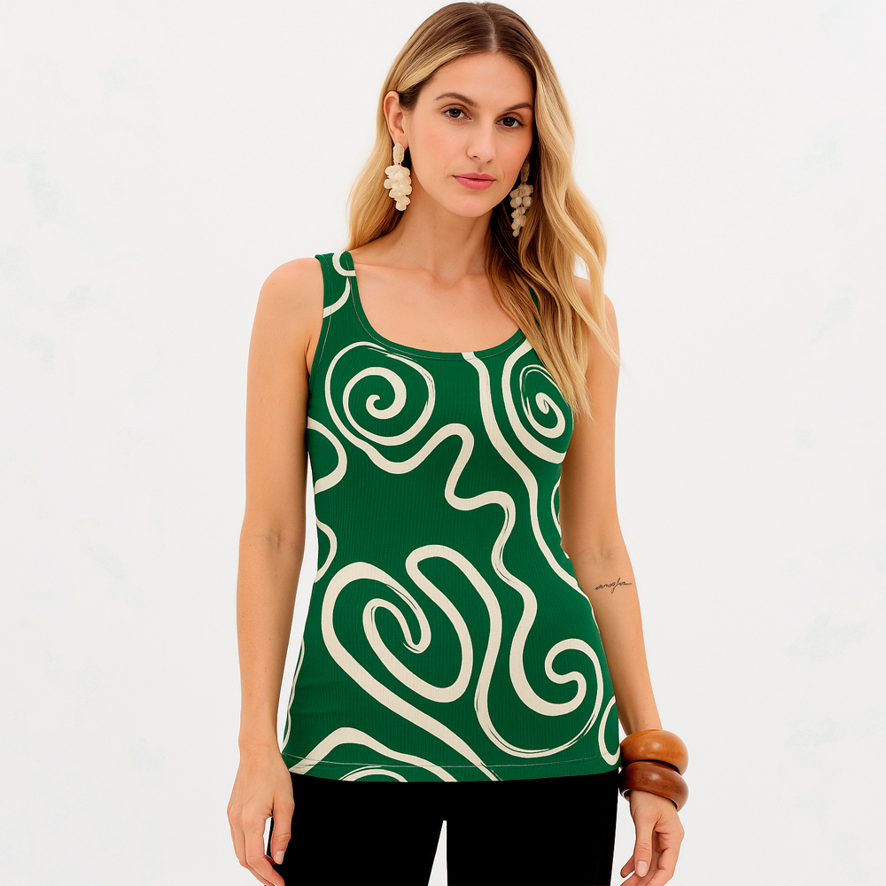 Regata Lança Perfume Canelada Estampada Ve26 Verde Feminino