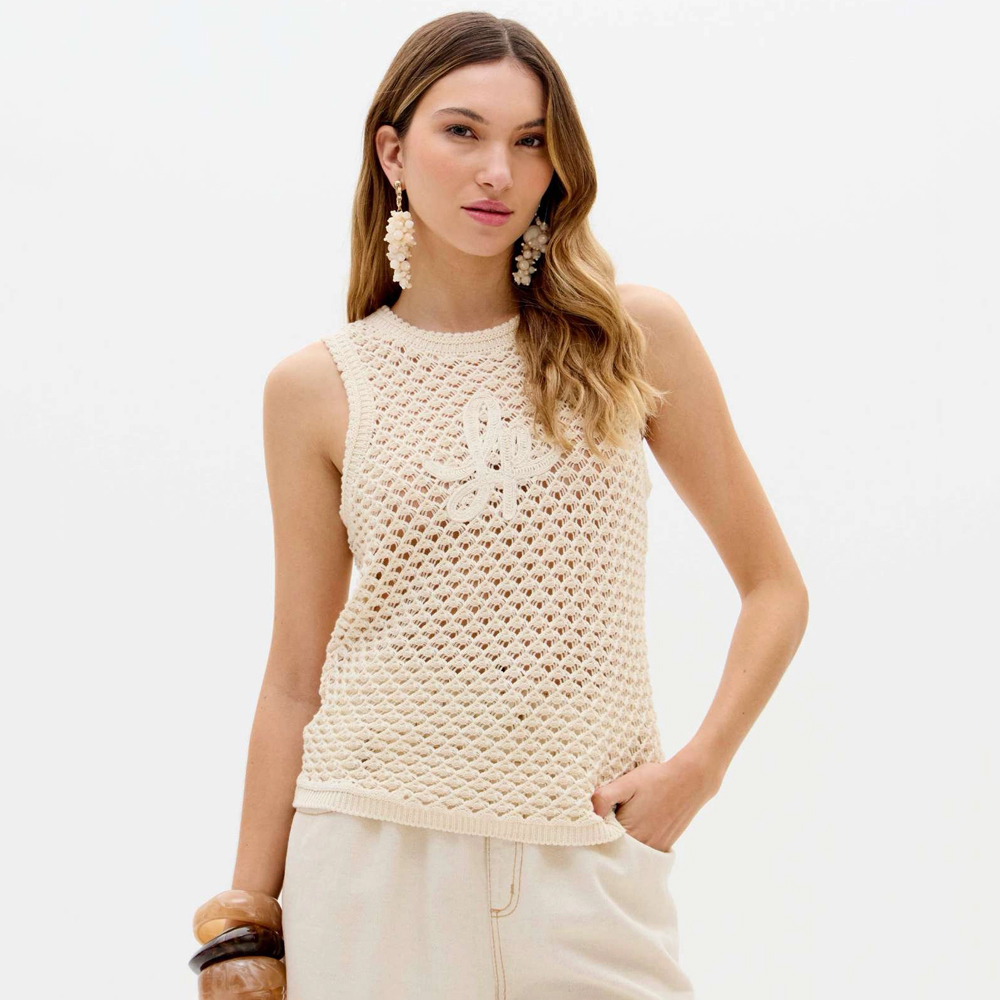 Regata Lança Perfume Trico Aplicação Ve26 Off White Feminino