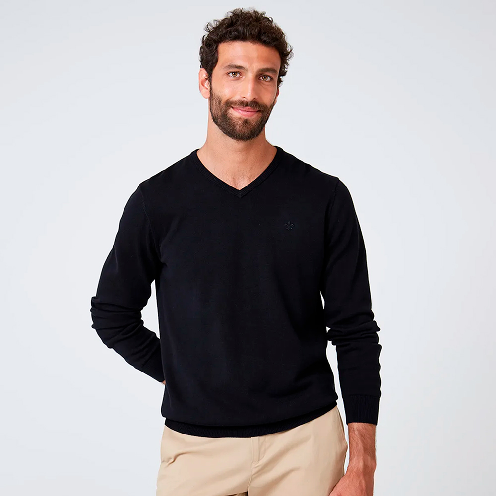 Suéter Tricot Dudalina Dec V Basic Ou26 Preto Masculino