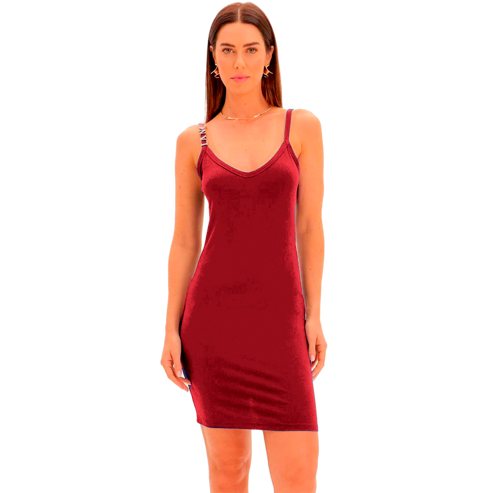Vestido Canelado Lança Perfume Curto Pr25 Vermelho Feminino