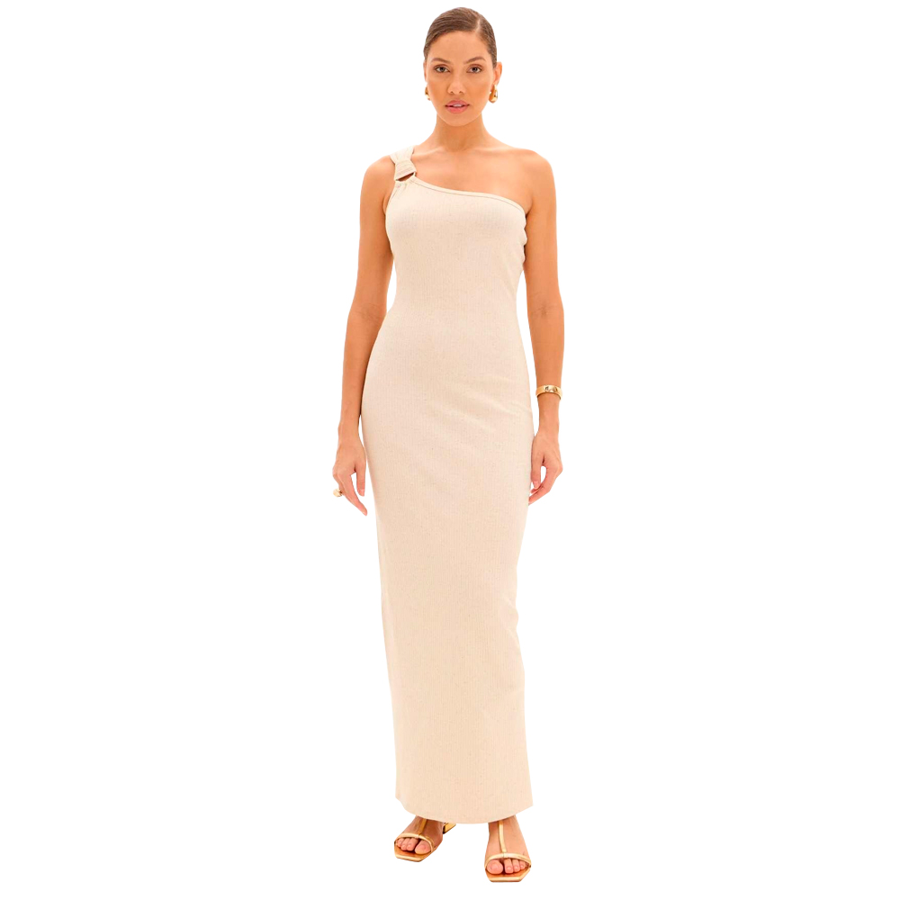 Vestido Canelado Lança Perfume Mid Pr25 Off White Feminino