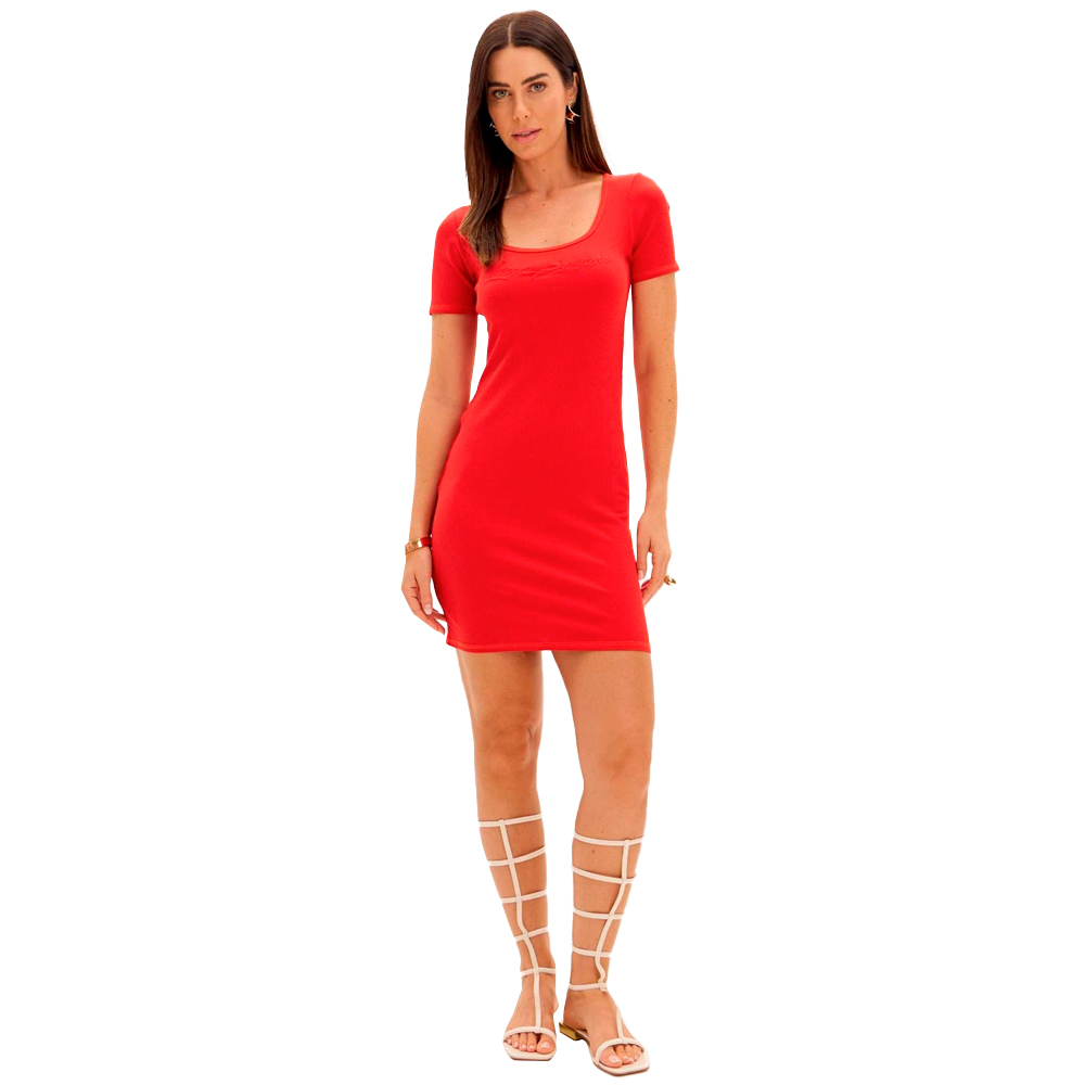Vestido Curto Lança Perfume Canelado Pr25 Vermelho Feminino