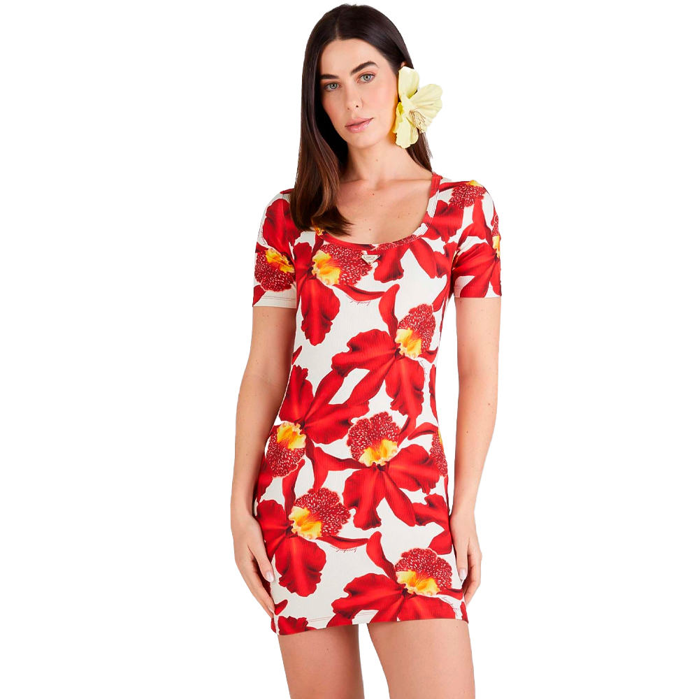 Vestido Curto Lança Perfume Canelado Ve25 Vermelho Feminino