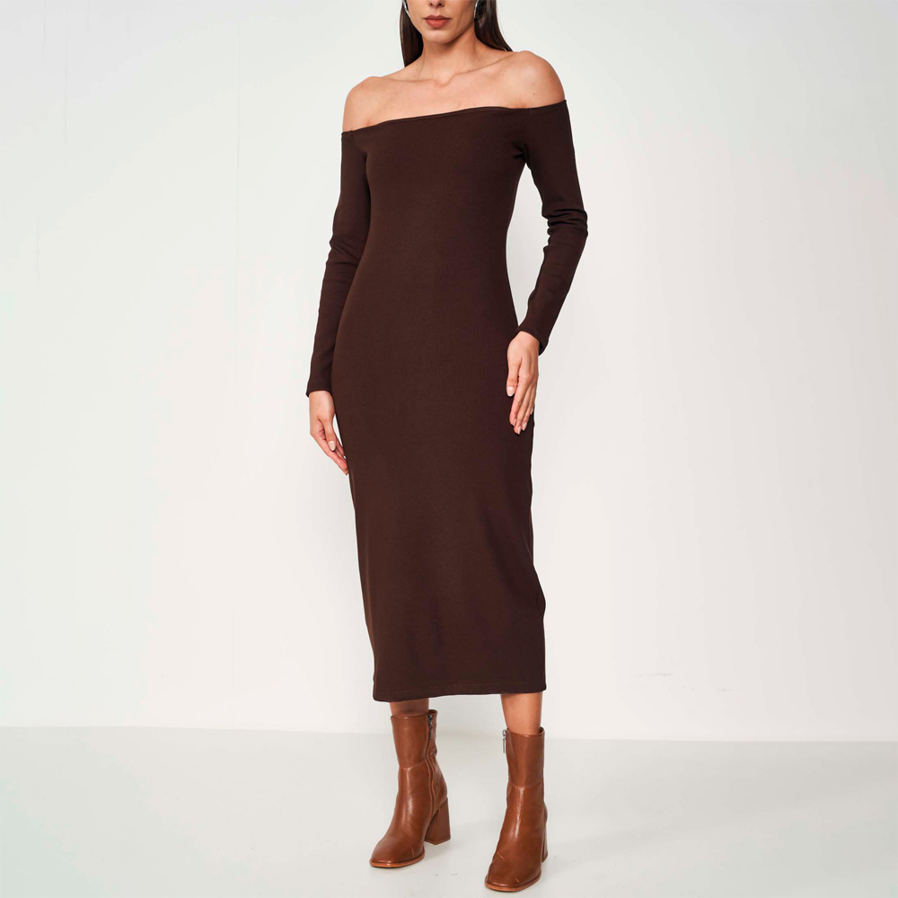Vestido Midi Colcci Ombro a Ombro Ou25 Marrom Feminino