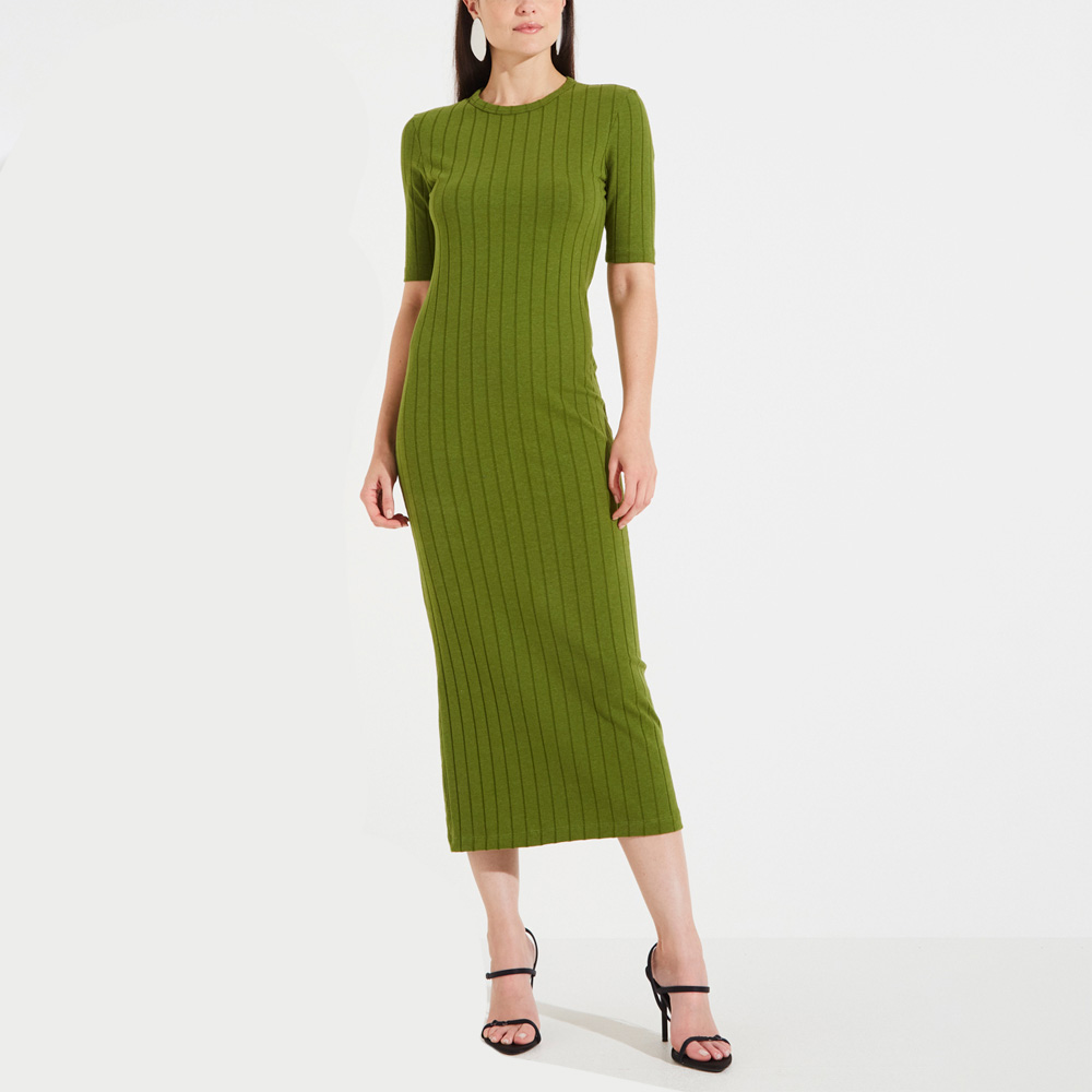Vestido Midi Forum Canelado Ou25 Verde Feminino