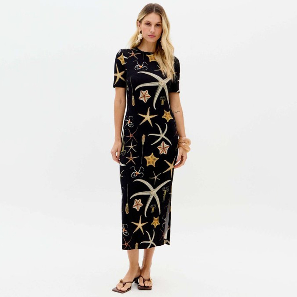 Vestido Super Midi Lança Perfume Frisos Ve26 Preto Feminino